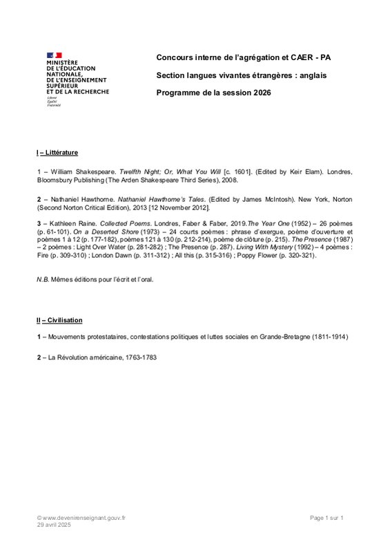 Programmes et ressources pour l'agrégation interne et externe - session 2026 — Anglais