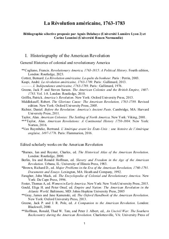 Table ronde agrégation : La Révolution américaine 1763-1783
